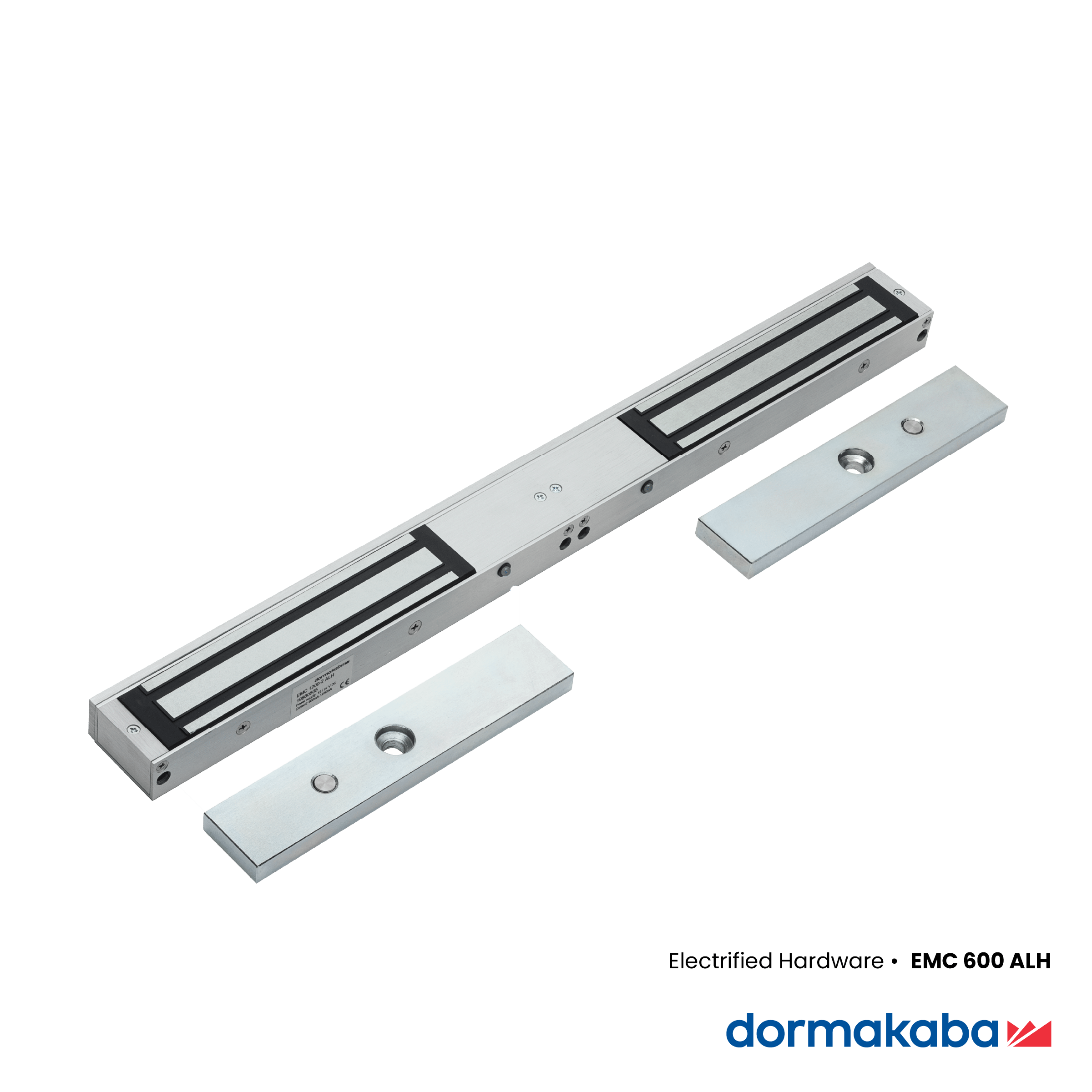 - EMC 600 ALH: Single magnetic lock with 600 lbf (2668 N) holding force, surface mount, with lock status sensor and red / green LED indicator, in anodised aluminum